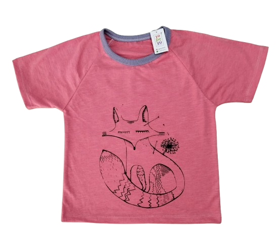 Estampa original, dibujada a mano en serigrafía manual con tintes al agua. Cuello combinado violeta